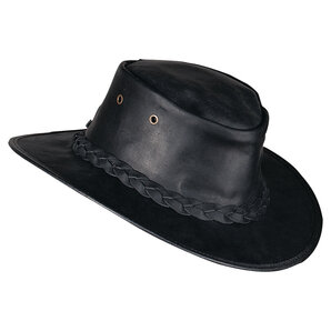 BLACK LEATHER HAT, XL FOLDAWAY BRONCO COWHIDE |