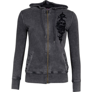 Lethal Angel ladies zip-hoodie - nice and eerie! With a double zipper - like that you can wear the hoodie mnore slim fit or wide and easy. Whatever you are in the mood for. In addition this zip-hoodie comes with even more awesome details (rivets, velvet print, vintage washing). Put it on, feel comfy and become the eye-catcher.