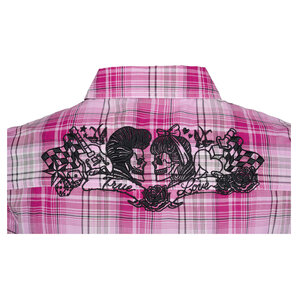 LETHAL ANGEL BLOUSE SZ L ROCKABILLY PINK CHECK |