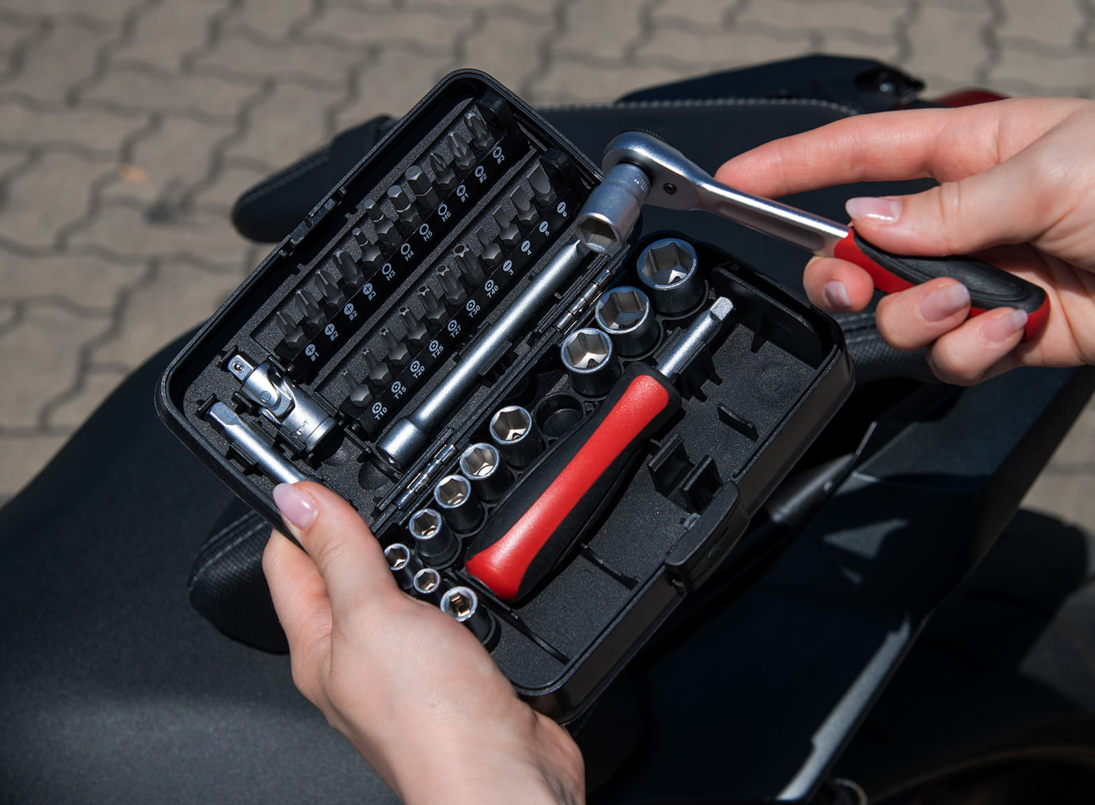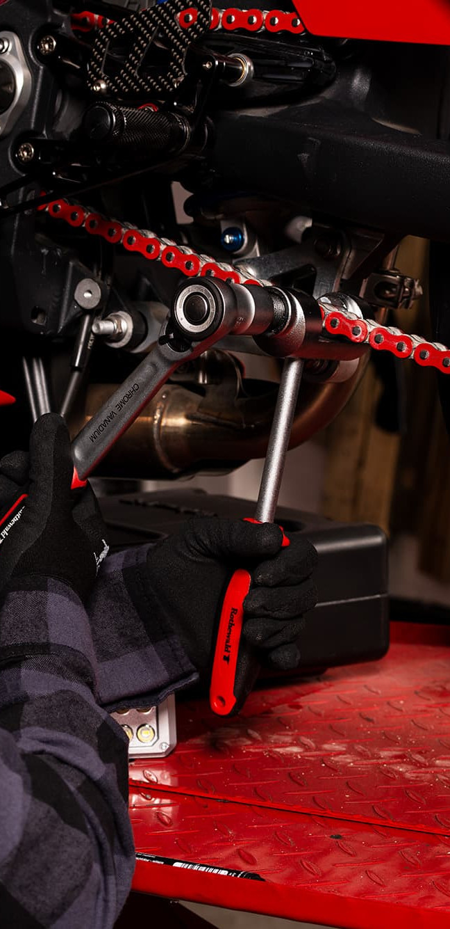 Screwing is fun! On your motorbike anyway. But only with tools you can trust. Like the tools from the Rothewald brand. They epitomise reliability, durability and expertise. From pliers and socket spanner sets to battery air pumps and hoists: Rothewald has everything your well-equipped motorbike workshop needs when it comes to quality tools.