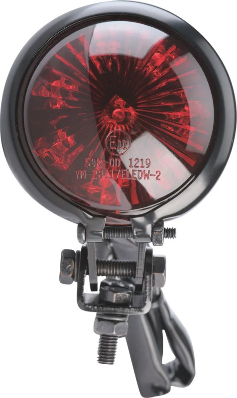LED tail light with classic look. Black metal housing with red lens and adjustable bracket.